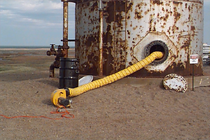 Here is the tank being vented to remove vapors. Lack of oxygen can also be a problem in tanks. The rusting process removes oxygen from the internal atmosphere.