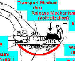 Here we see the primary source part of the picture, with a red line emphasizing the lower limit of the contamination. The picture is trying to show some buried barrels in the ground, and other barrels on top of the ground.