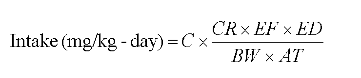 Here is the generic formula for calculating intake of a chemical. It looks a little intimidating, but it's simpler than it looks: