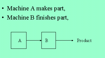 Consider an assembly line that makes finished parts. It has machines A and B.